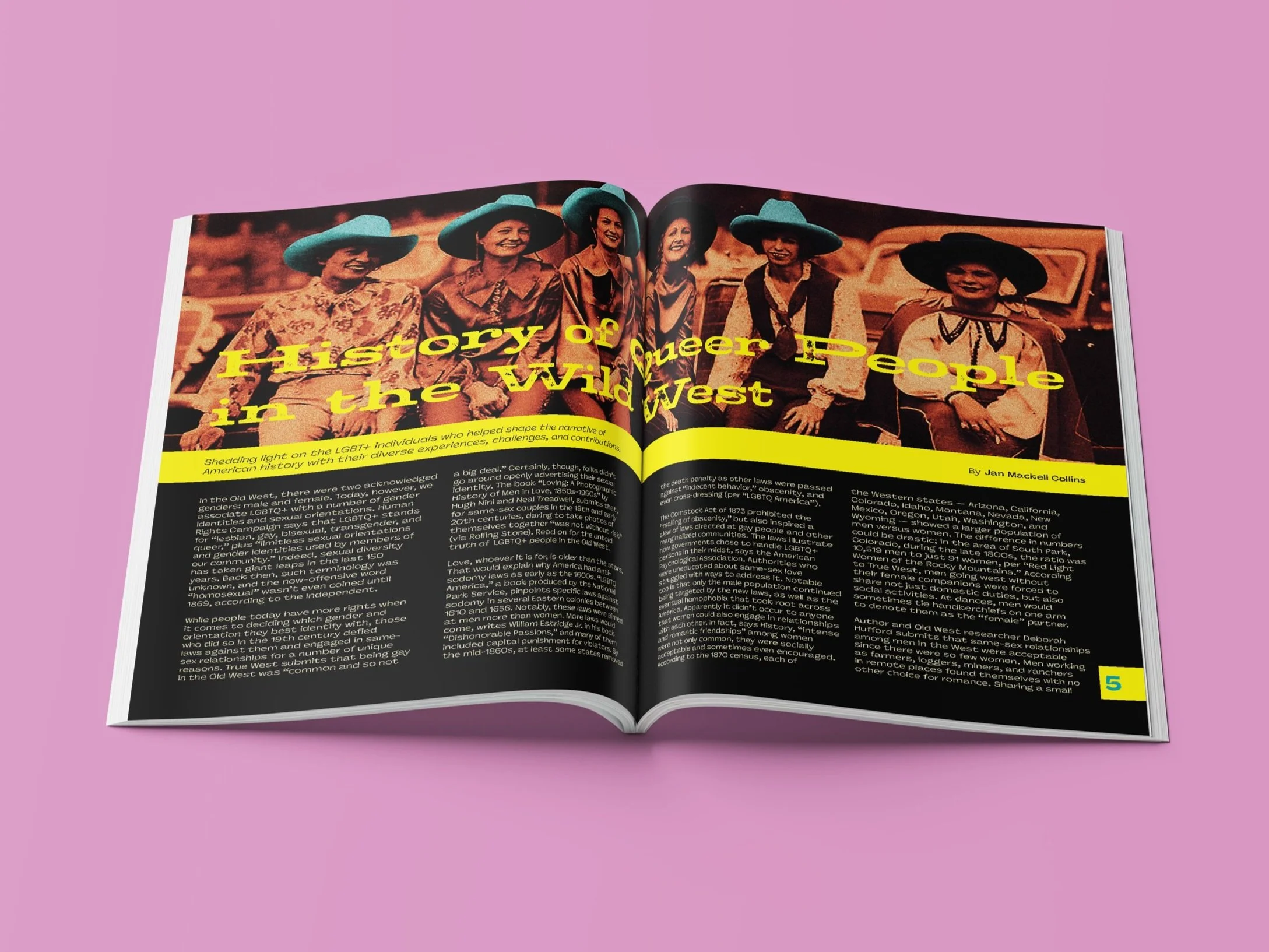 Cowfolx is a vibrant magazine that explores the rich and complex history of queer culture in rural America. Featuring bold Western typography and bright, eye-catching colors, it celebrates identity and defies convention.